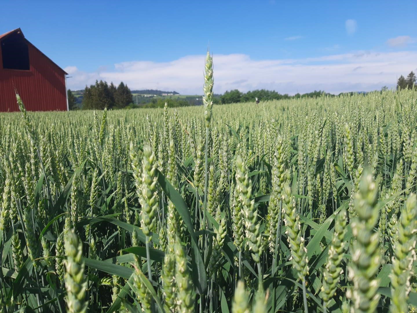 Nå er det grønt overalt! Høsthveten kommer kjempefint, bygget har spirt og gresset skikkelig begynt å strekke seg. I Trøndelag har temperaturen også sakte krøpet oppover, og det er fint med fukt, så alt ligger til rette for vekst. Mye sol og høyere temperaturen er meldt fremover, så nå er det optimisme.