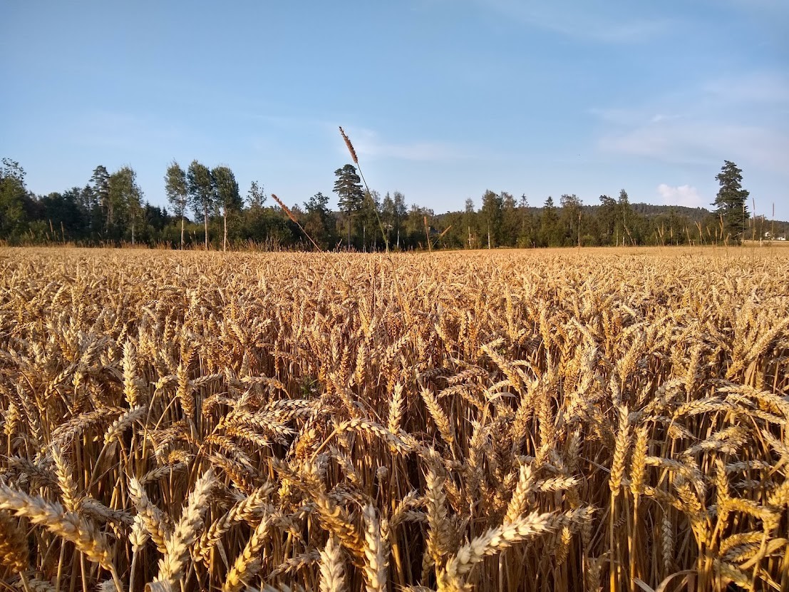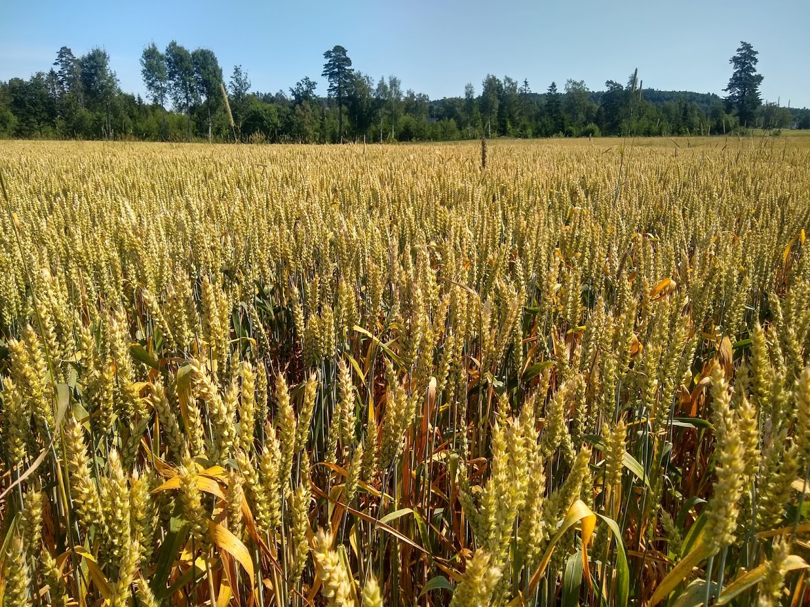 De siste ukene har det vært varmt, opp mot 30 grader, og det ser ut til å fortsette. Høsthveten har nå mistet mye grønnfarge og er nå rundt stadie 83, tidlig deigmodning. Seine buskingsskudd er fortsatt grønne. Enkelte steder er det mye timotei, tistel og særlig balderbrå som har fått lite konkurranse fra høsthveten. Vårkornet ser stort sett bra ut, men det er nok i varmeste laget for god kornfylling nå. Den tetteste byggåkeren (Thermus) gikk delvis ned i knestående etter kraftige byger forrige uke. Sånn det ser ut nå, kan det bli forholdsvis tidlig tresking i år.