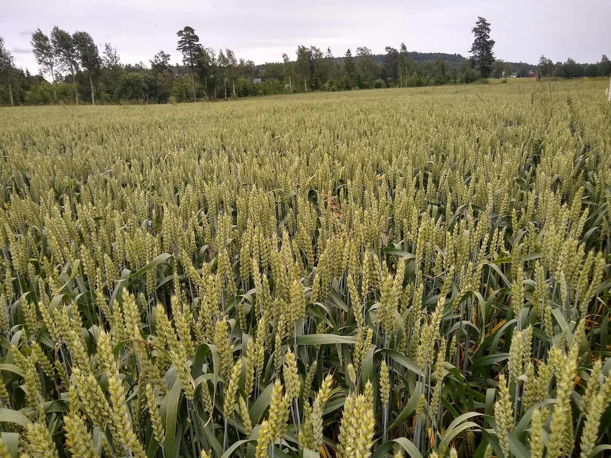 For snart ei uke siden fikk høsthveten siste soppbehandling, med 80 ml Aviator Xpro. Det samme gjorde det meste av vårkornet, så nå er sprøyta parkert for sesongen. Etter ei varm og tørr uke ser det ut til å bli regn og kaldere vær fremover. Selv om høsthveten har dype røtter, skader det nok ikke med litt vann i kornfyllingsfasen.