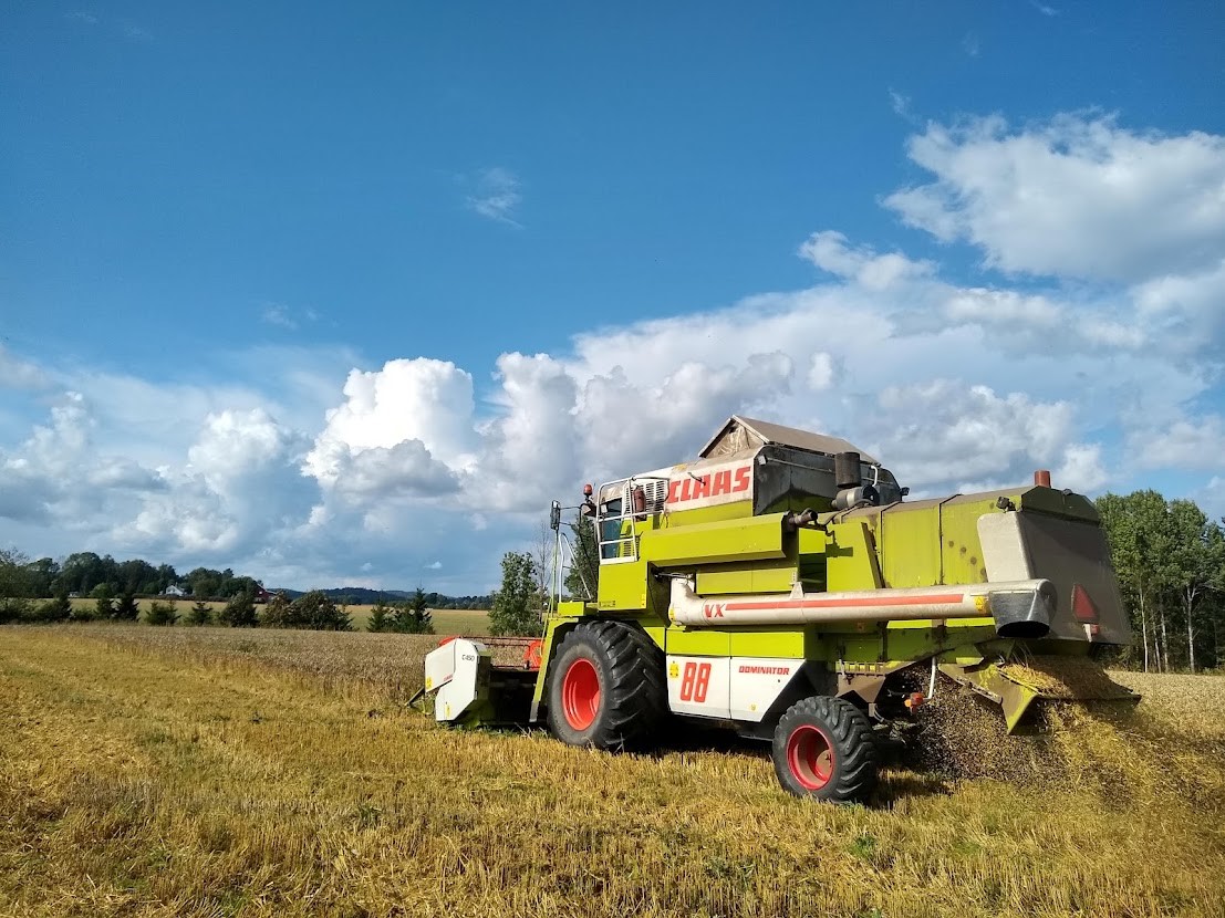 Da er vi godt i gang med å treske høsthveten. Vi begynte allerede 5. august på det tidligste skiftet. Det holdt 20% vann og er nå nedtørket og klart for levering. Forhåndsprøva viser matkvalitet med hl vekt på 79, falltall 290 og protein% på over 14! Resten av høsthveten tresker vi i dag og i morgen hvis været holder seg.