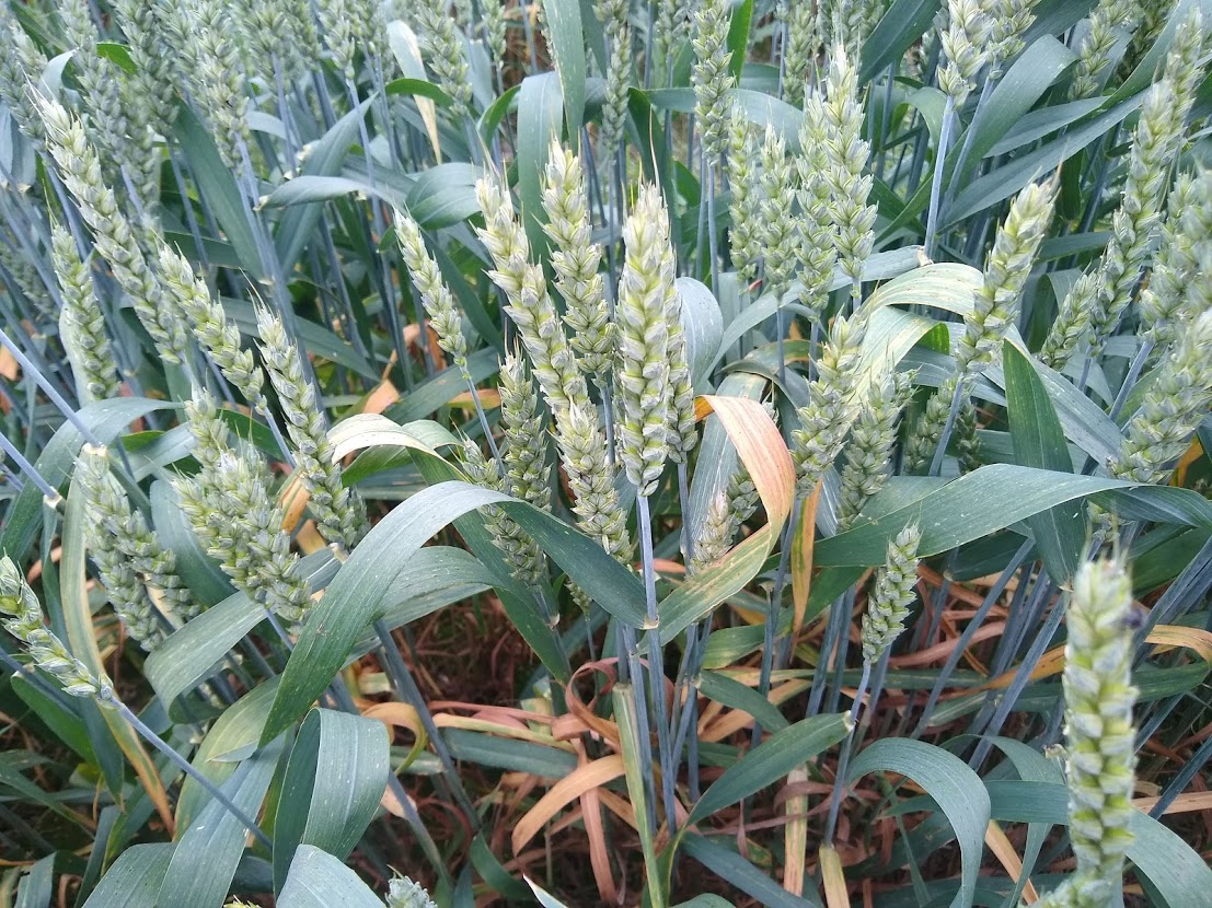 Høsthveten er nå i ferd med å skyte under et dekke av brede, glinsende flaggblader. Det er fortsatt litt tørt, men det meldes om nedbør mot helgen. Åkeren ble sprøytet med Cerone og Elatus Era for ei uke siden, litt seinere enn planlagt. Det var nok på høy tid, for det er antydning til soppangrep på enkelte flaggblader.