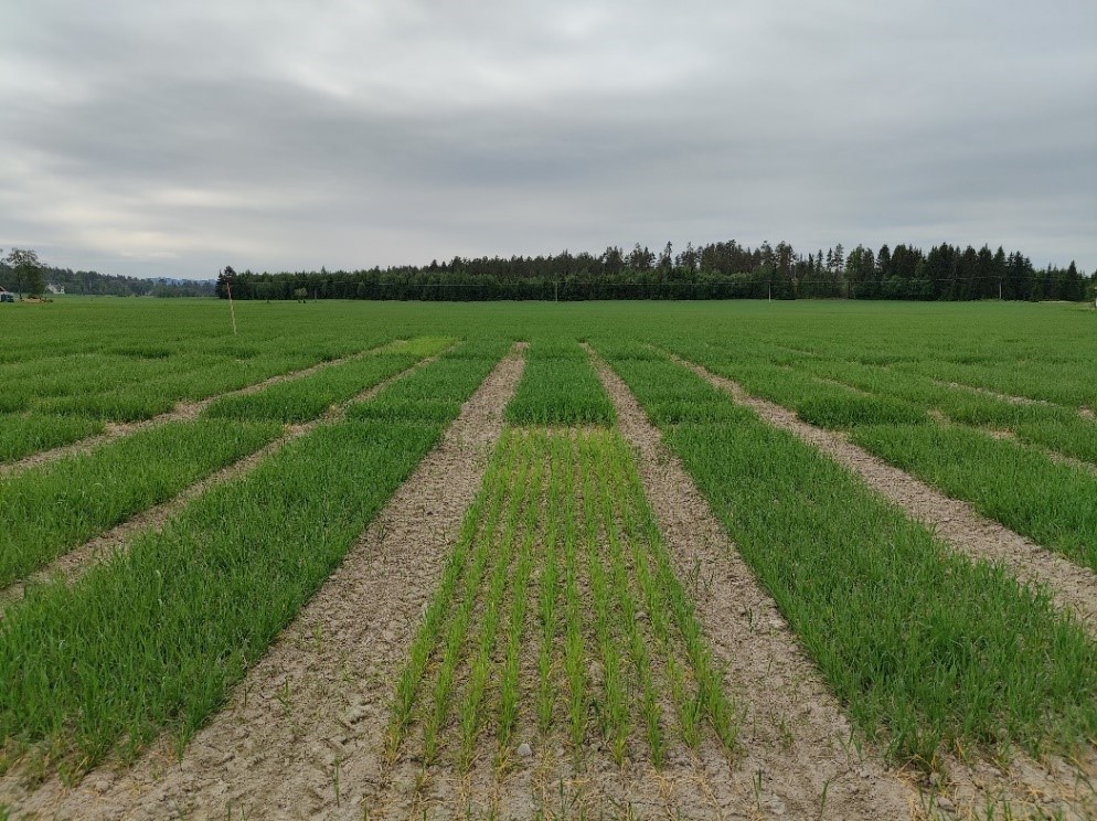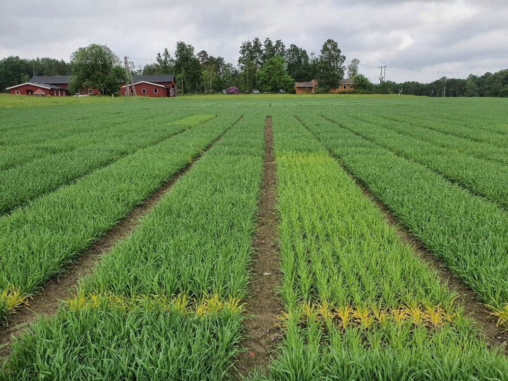 Vekstsesongen 2021 så langt har bydd på flere utfordringer for det vårsådde kornet. Det meste ble sådd under gode forhold, men kanskje på litt for fuktig jord enkelte steder. I siste halvdel av mai kom det betydelige nedbørsmengder, og jord med dårlig struktur slet med å få vannet unna. Det førte til en del gulning i enkelte åkere. Etter det har vi hatt en periode med høye temperaturer og lite nedbør, og dermed begynnende tørkestress i en del åkere.
