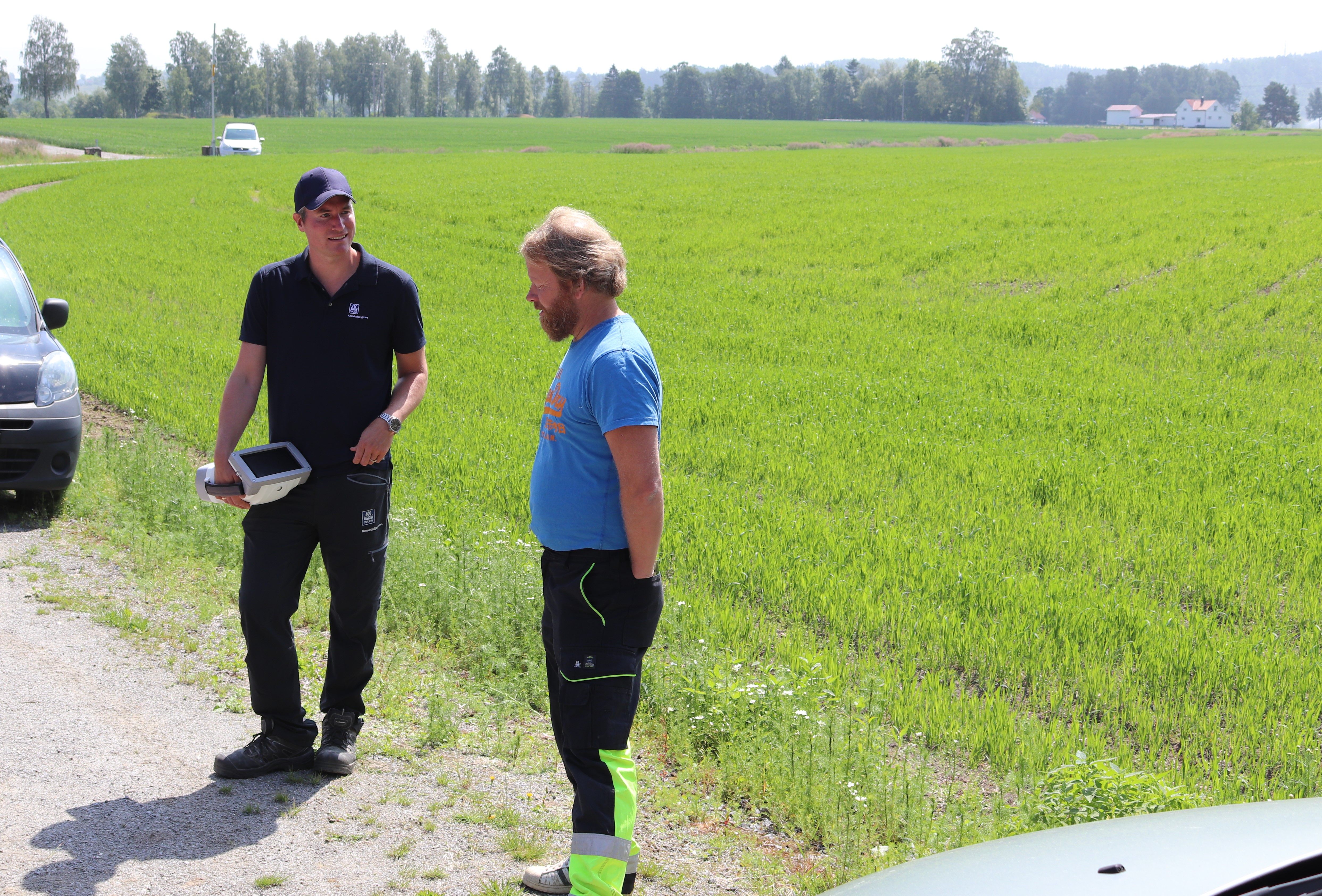 Tore Røisehagen Daarstad viste fram den håndholdte N-sensoren som NLR Viken benytter under målingene til Yara N-prognose. Yara N-prognoser utarbeides i mai-juni. NLR utfører målinger i flere forsøksfelt fordelt rundt om i landet. Resultatene av disse målingene ferdigstilles av NIBIO og presenteres ukentlig på Yara Norge sine hjemmesider. Hensikten er å vise hvordan vekstforholdene påvirker jordas nitrogenfrigjøring og plantenes opptak av tilført nitrogen.