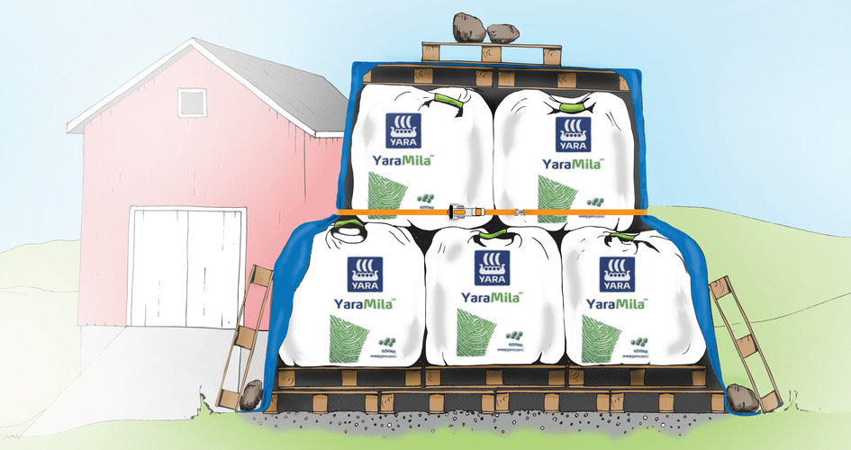 Vær oppmerksom på at YaraBela® OPTI-NS™ 27-0-0 (4S), SULFAN® 24-0-0 (6S) og OPTI-KAS SKOG™ er gjødseltyper som er følsomme for høye temperaturer (svingninger over og under 32° C) og direkte sollys. Ved slike forhold kan gjødselkornene bli ødelagt. Ved utelagring av disse produktene anbefaler vi som nevnt over at det legges et lag paller under presenningen for å få luft mellom gjødselsekkene og presenningen.
